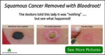 Put the bloodroot salve on it once and it stuck to it.Over the next two weeks it drew the cancer out (looked a bit like cauliflower growing) and it just dropped off.